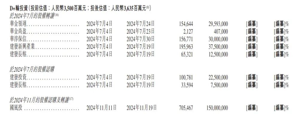 公司上市前经历了多轮融资,在2024年的D+轮最新融资中,公司的投后估值约为36.35亿人民币。