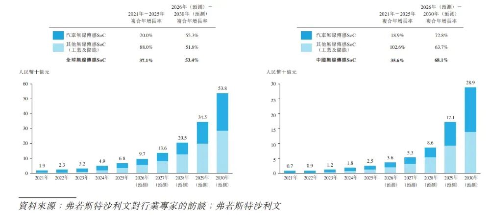 根据弗若斯特沙利文(Frost & Sullivan)的报告,按收入计,恒信证券,恒信证券配资,香港恒信证券公司全球汽车无线传感SoC行业市场规模从2021年的人民币19亿元增长至2025年的人民币68亿元,复合年增长率为37.1%。预计至2030年,市场规模将达到人民币538亿元,2026年至2030年的复合年增长率为53.4%。